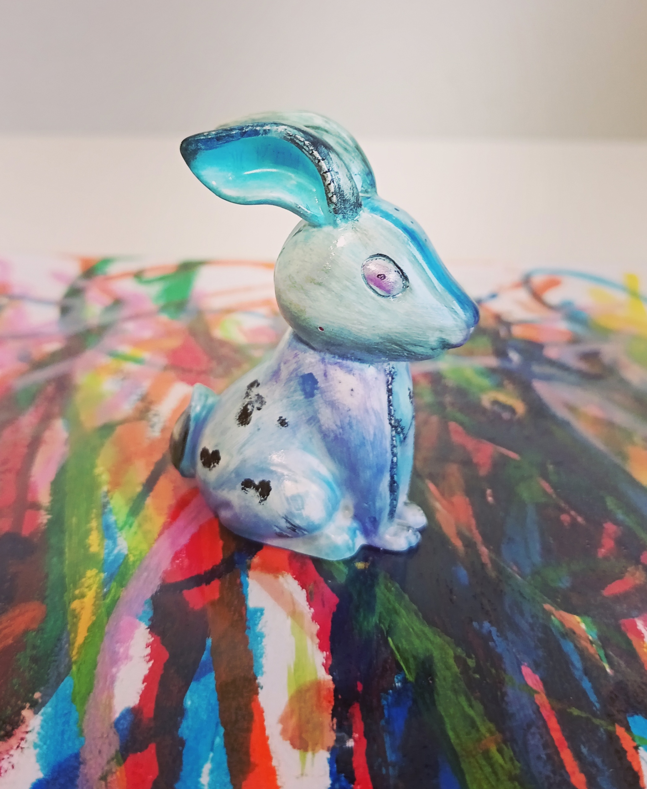 Figurine en plâtre, façonné entre mes main, peinture acrylique, vernis.